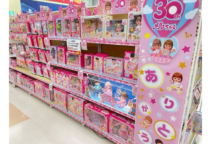 こんにちは!ジョーシン伏見店キッズランドです。 みんなだいすきメルちゃんは、今年で誕生30周年! 世代を越えて皆様に愛され続けるメルちゃんをお店のスタッフみんなでお祝いしています。お店ではメルちゃんもお友達と一緒にお祝いしています♪ メルちゃん30周年おめでとう!そして、ありがとう! ぜひ、ジョーシン伏見店に会いにきてね! メルちゃんの他にも、お洋服や家具、お世話グッズなどたくさんの品揃えで みなさまをお待ちしております!