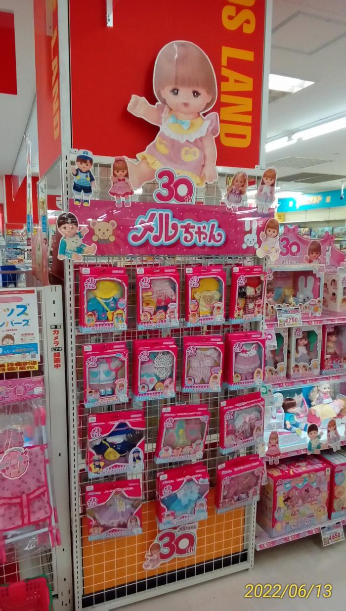 メルちゃん30周年♪ 当店のメルちゃんコーナーは 30thの気球が飛んでいたり ピンクで可愛らしく賑やかになっています。 お人形遊びは心の発育を育みます。 この機会にぜひ当店にお越しくださいませ。 お待ちしております。