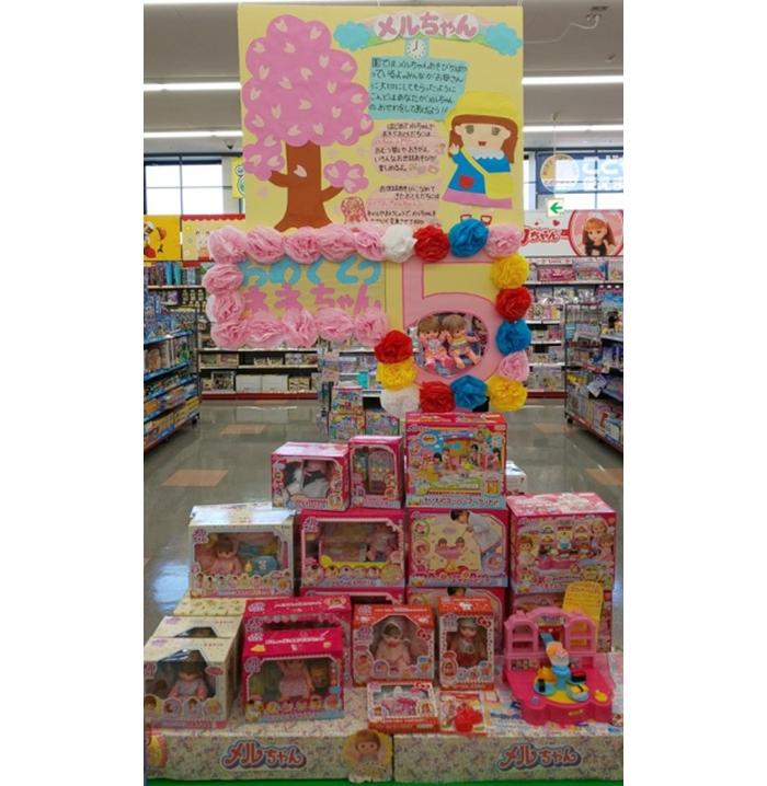 メルちゃんの売場とは別に、目立つところに「メルちゃん」・「ネネちゃん」のオススメ商品を展開しています。ぜひ、見に来てください。